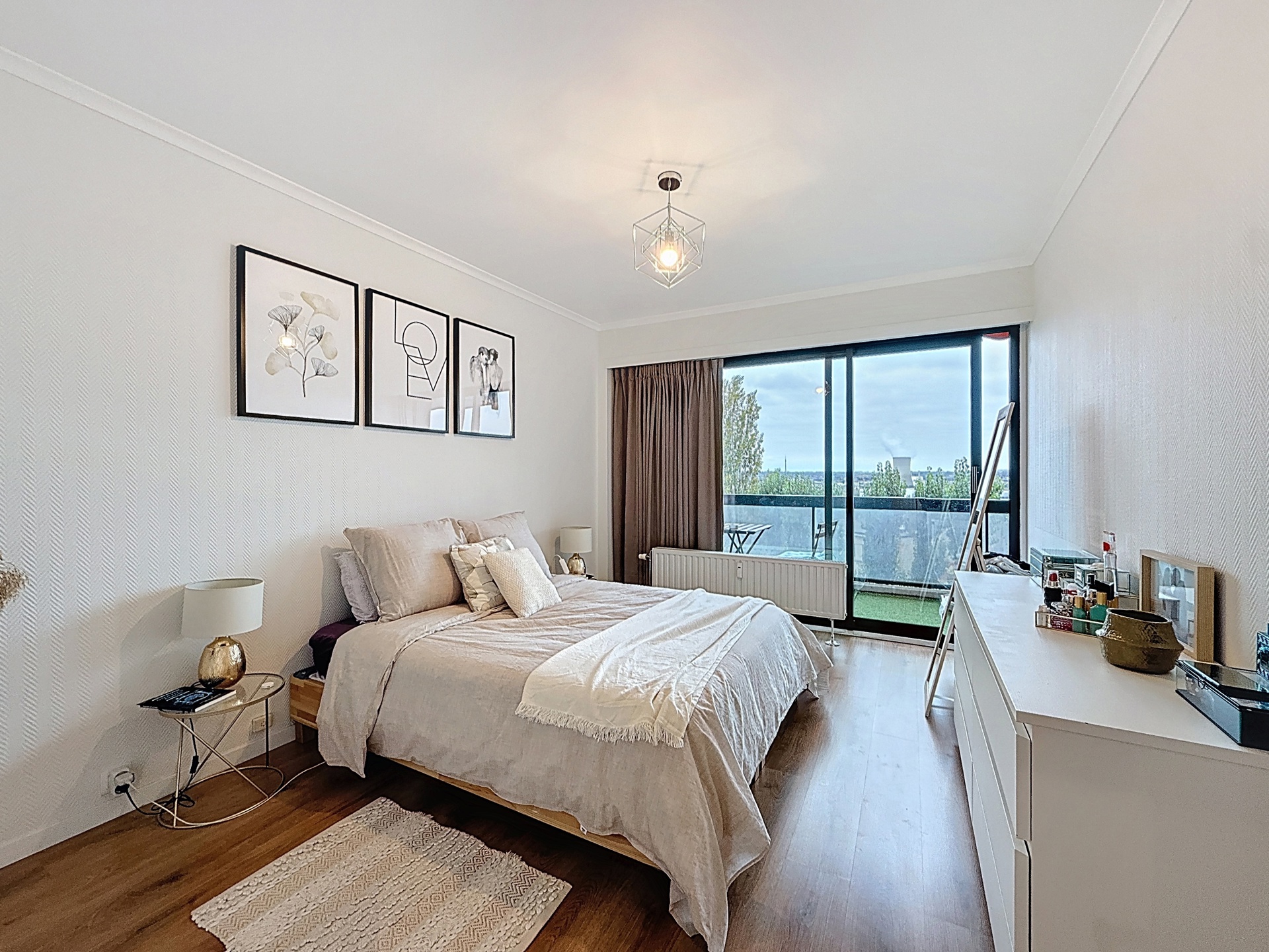 DUDEN PARK/FOREST - Open view - Apartment of +/- 90m² ideally located near public transport and shops. It consists of an entrance hall with storage, large living room with access to a beautiful southwest facing terrace, semi open fully equipped kitchen with washing machine space, night hall, separate toilet, dressing room, shower room, 2 bedrooms with access to the terrace, cellar, bike storage room, concierge, possibility to rent a garage box (150 €/month). Charges: Provision of 150€/month for heating, cold water and common charges. EPC: C-. Info & visits at 02/533.40.40 or on www.oralis.be.