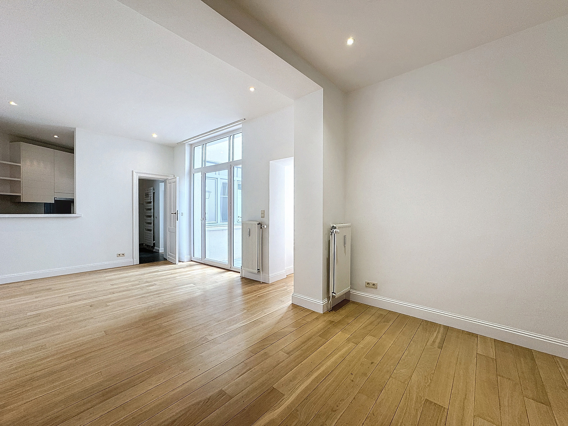 CINQUANTENAIRE / CEE - Ideally located near the Parc du Cinquantenaire and the European Quarter, apartment of + -102m² offering a spacious living room with access to a courtyard, fully-equipped kitchen, 2 beautiful bedrooms with numerous wardrobes, each with their own bath/shower room , separate toilet, washing machine, cellar, PEB: F. INFO / VISITES at 02 / 533.40.40 on www.oralis.be